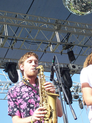 A clamorous and multi-instrumental set from Architecture in Helsinki (not from Helsinki mind you but Australia) also popped up that afternoon. AIH were the first folks of the fest to be sporting the very popular yet really awful '80s fluorescent fashion alongside the kind of brightly colored sunglasses you know I had in the eighth grade.